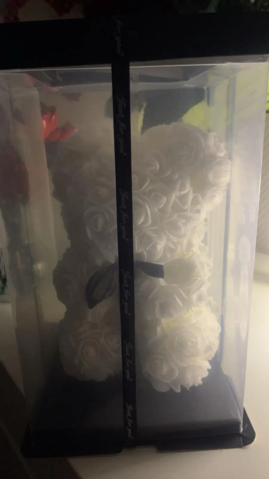 The 25cm Enchanted Rose Bear is a romantic and unique gift, ideal for Valentine's Day, Christmas, and birthdays. Made with preserved roses, it offers everlasting beauty and love.